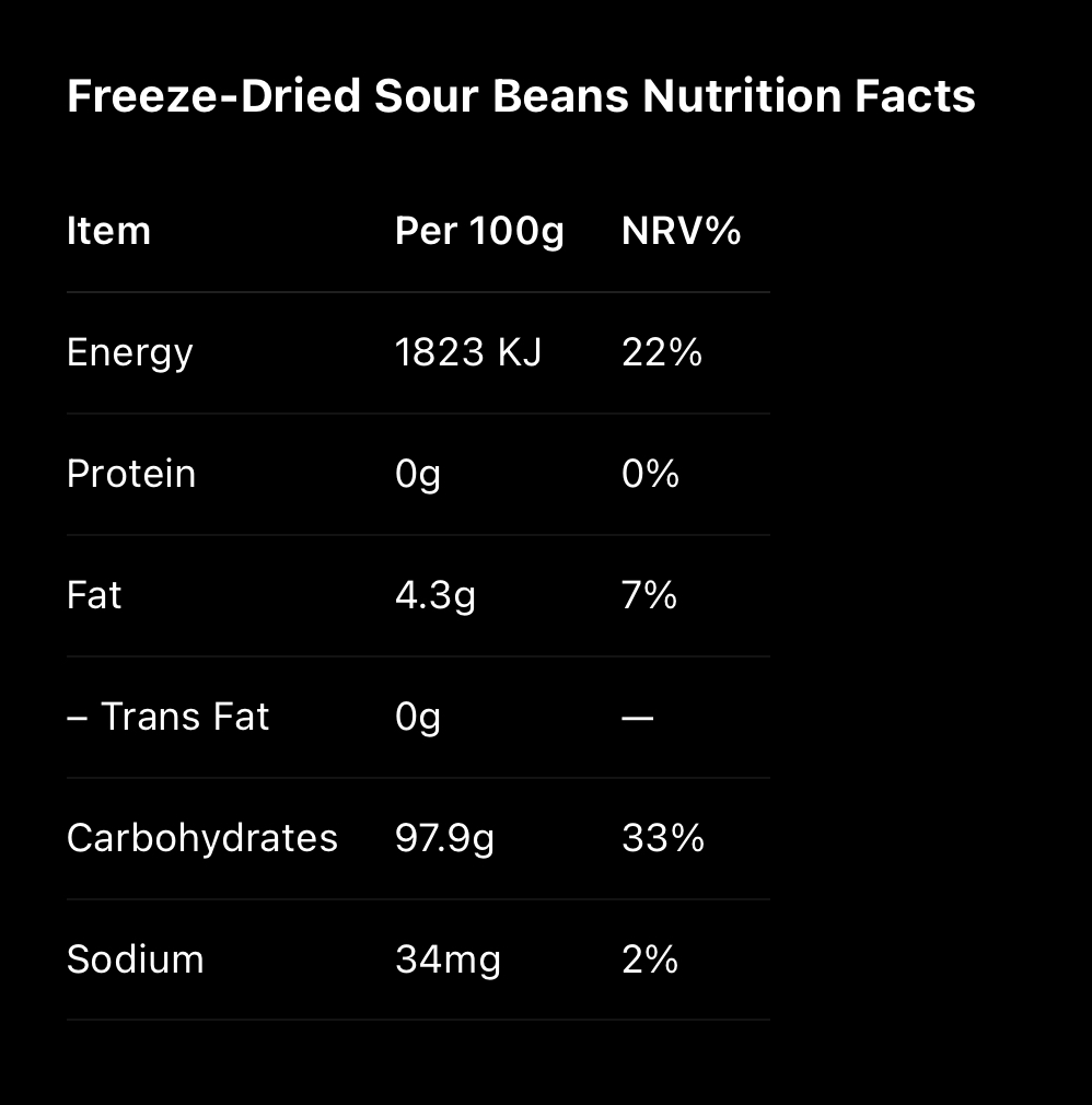 Freeze-Dried Sour Beans Nutrition Facts